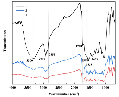 This study focused on investigating the binding agent. Bicinchoninic Acid (BCA) testing detected no protein components, ruling out animal glue. Furthermore, analysis of the black binding material using Infrared Spectroscopy showed a shifted hydroxyl peak, approximating that of a phenolic hydroxyl group (Fig. 4). Analysis by Gas Chromatography-Mass Spectrometry (GC-MS) detected the presence of benzene ring structures in the black binding material (Fig. 5), providing further evidence for the presence of phenolic hydroxyl group in the binding agent. Considering the binding materials used in ancient human activities, it can be inferred that the binding agent was lacquer. This indicates that the craftsmen utilized lacquering techniques to achieve painted decoration with pigments on the metal surface of the bronze ware, reflecting a cross-craft technological connection between Sanxingdui bronzes and lacquer ware production.