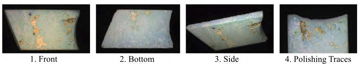 Abstract: A large number of flake turquoises were excavated from the sacrificial zone at the Jinsha Site, and they were most likely inlaid on other materials to jointly form decorative objects. The flake turquoises have remained little known to the public. This paper focuses on collating and reporting the typical flake turquoises unearthed from IT8105 and IT8106 within the sacrificial zone, in order to explore their characteristics and functions.