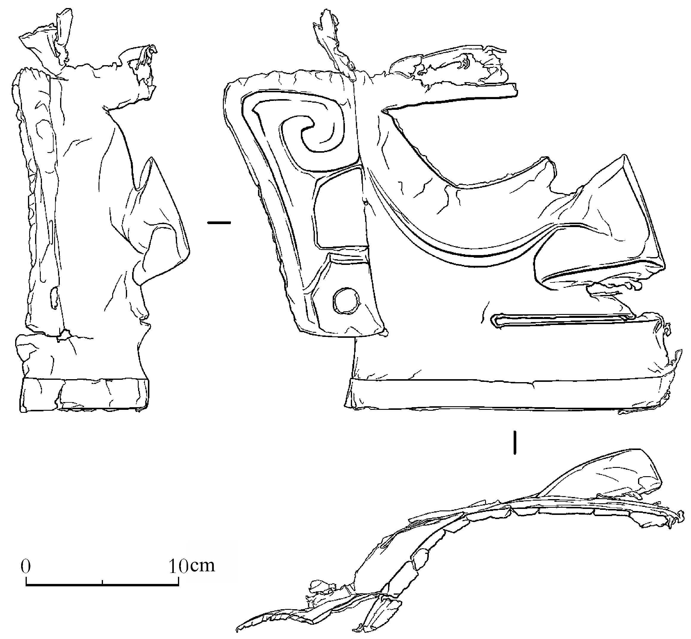 Abstract:A gold mask (K5:3) was unearthed from Pit No. 5 in the sacrificial zone of the Sanxingdui Site, though it was severely deformed upon discovery. Based on analyses of its material, burial environment, and deterioration conditions, a targeted conservation and restoration plan was developed and successfully implemented. The mask after restoration weighs 280g, with a remnant height of 25.47cm and remnant width of 27.8cm. It was fabricated with a gold-silver alloy containing 84.47% to 85.33% of Au and 13.8% to 14.25% of Ag. Regarding the fabrication process, it was supposed to be heated and hammered into a thin piece of gold and gradually take shape through cutting, engraving and percussion. After polishing, the outline is highlighted. The gold mask was likely not used independently but rather affixed to a bronze head or a mask of other material. It is by far the largest and heaviest gold mask ever found in the Sanxingdui Site, providing new material for the study of the Sanxingdui Culture. Its restoration presents vital experience for the repair of ancient gold artifacts in China.