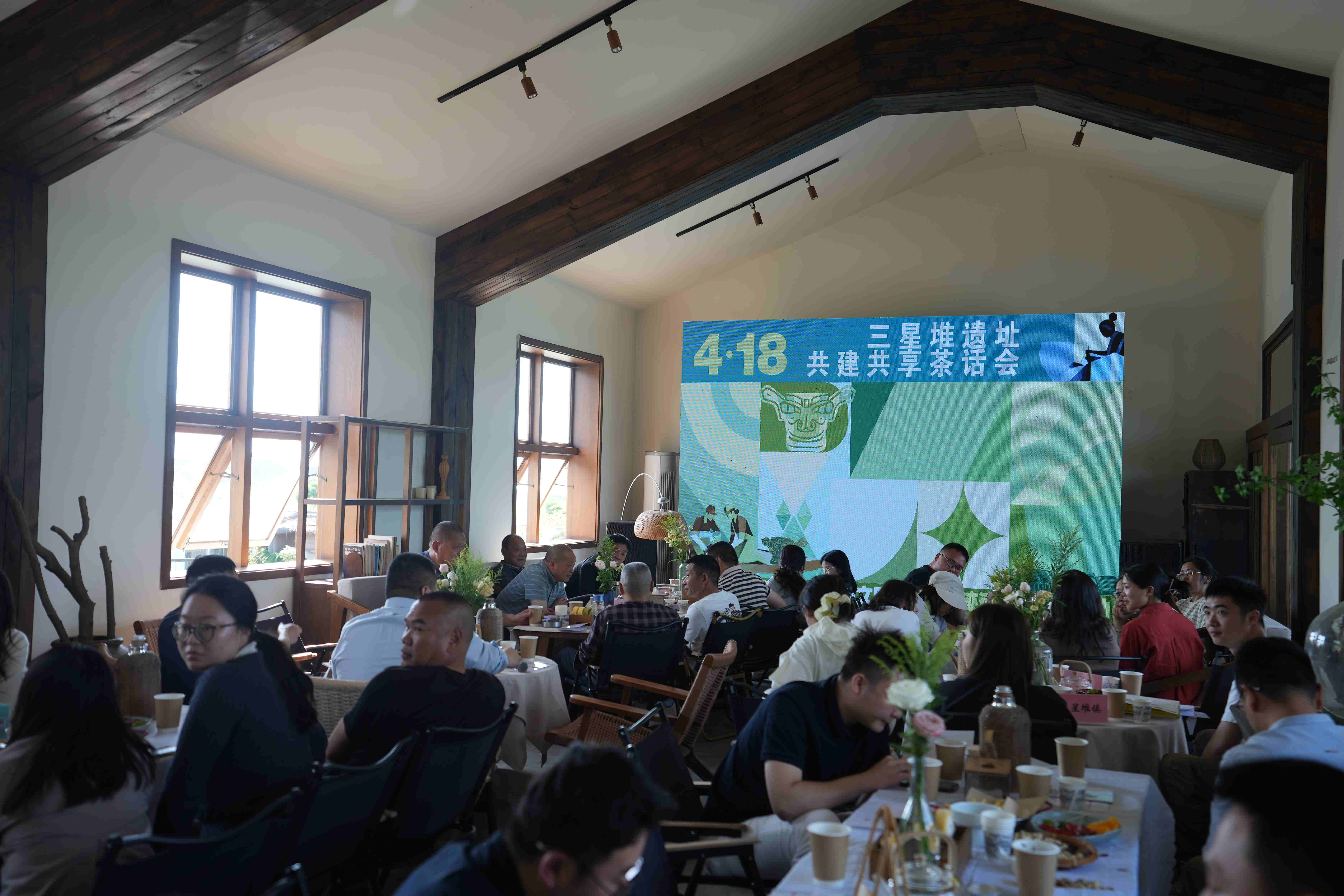 On April 17, a co‑construction and sharing tea talk was held at the Sanxingdui Site. More than 40 people gathered around a table, including residents of the Sanxingdui area, staff from the Sanxingdui Management Committee and Sanxingdui Museum, and university guests, to offer suggestions for the protection of the site area.
